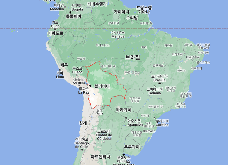 볼리비아는 남미 중서부에 위치한 내륙국으로, 동쪽으로는 브라질과 파라과이, 북쪽으로는 페루와 브라질, 서쪽으로는 칠레와 페루, 남쪽으로는 아르헨티나와 접해 있습니다. 국토 면적은 약 110만㎢로, 세계에서 8번째로 넓습니다.
