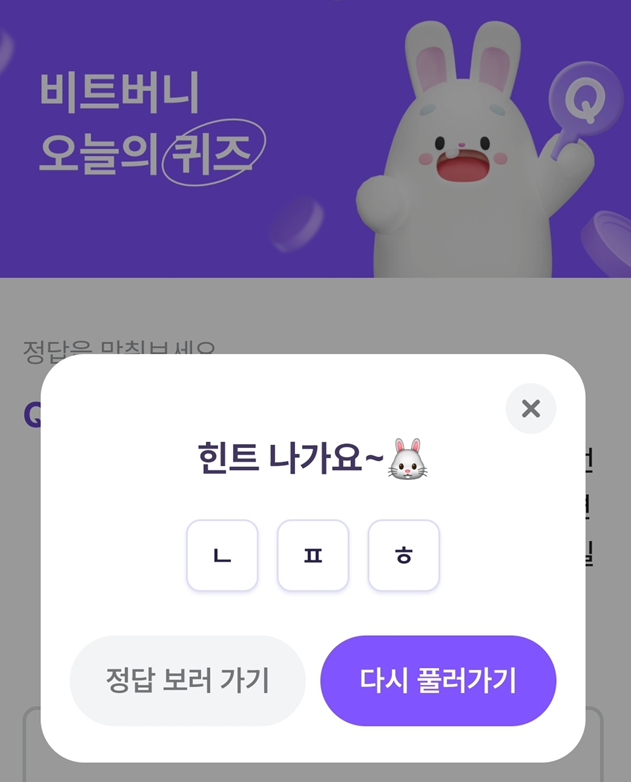 비트버니 4월 1일 오늘의 퀴즈, 정답은? ㄴㅍㅎ