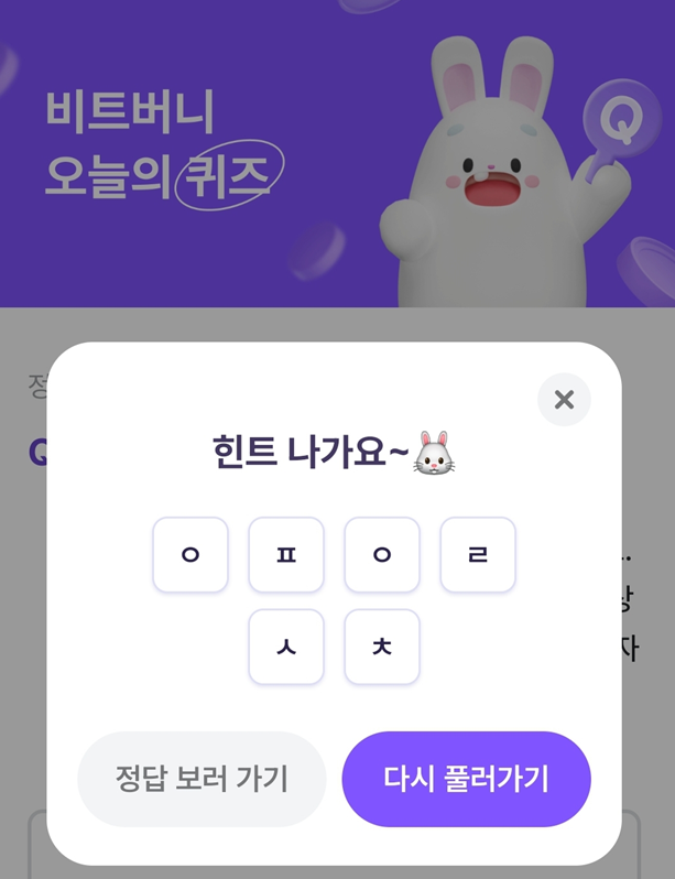 비트버니 4월 16일 오늘의 퀴즈, 정답은? ㅇㅍㅇㄹㅅㅊ