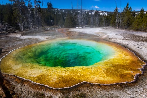 옐로스톤 화산의 칼데라는 약 6만 4천 년 전에 마지막으로 폭발했으며, 그 이전에도 3차례 큰 폭발이 있었다고 알려져 있습니다. 칼데라는 폭발 후 형성된 거대한 분지로, 이 지역은 현재도 활발한 지열 활동이 계속되고 있습니다. 옐로스톤의 뜨거운 물과 증기는 지하에서 지속적으로 활동하는 마그마로 인해 발생합니다.