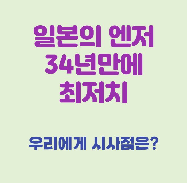 최근 엔화는 34년 만의 최저치를 기록하였습니다. 이는 무엇을 의미하고, 앞으로 어떤 영향을 미칠까요? 이 것은 우리에게 주는 시사점이 큽니다. 우리나라 환율도 계속 내려가고 있기 때문에 일본을 통해서 우리가 어떻게 해야할지에 대해서 고민해야 합니다.