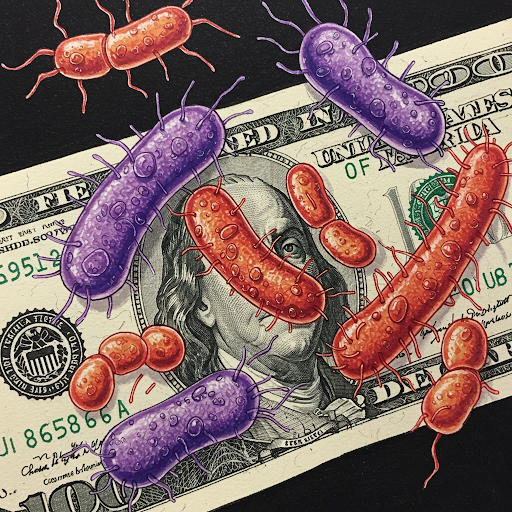 돈은 수많은 사람의 손을 거치며 오염됩니다. 특히 지폐는 종이로 만들어져 세균이 번식하기 더 쉬운 환경을 제공합니다. 연구에 따르면, 한 장의 지폐에는 평균 26,000마리 이상의 세균이 존재할 수 있다고 합니다. 이는 우리가 상상하는 것보다 훨씬 많은 양입니다.