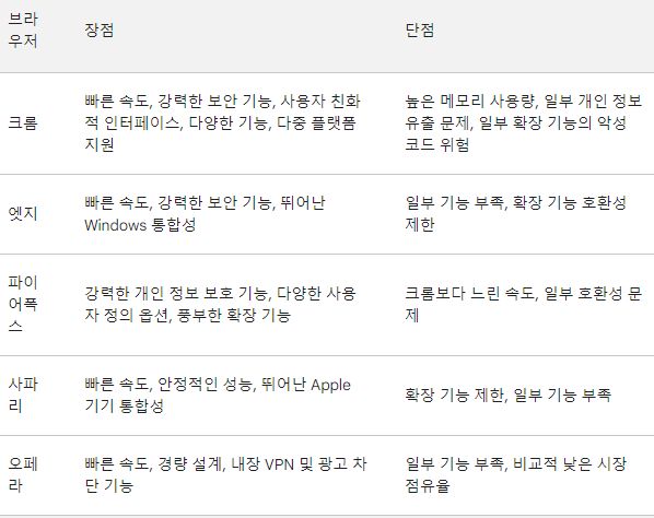 - 사파리: macOS 및 iOS 기기의 기본 브라우저이며, 빠른 속도와 안정적인 성능을 제공합니다. Apple 기기와의 뛰어난 통합성을 가지고 있습니다.