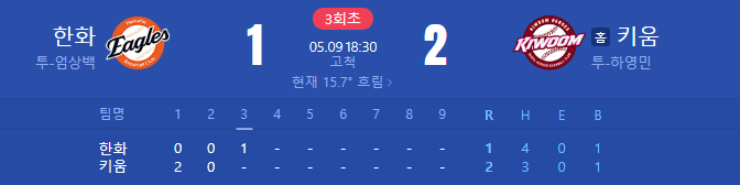 9연승 달성을 위해 마운드에 오르는 선수는 바로 문동주 선수입니다.