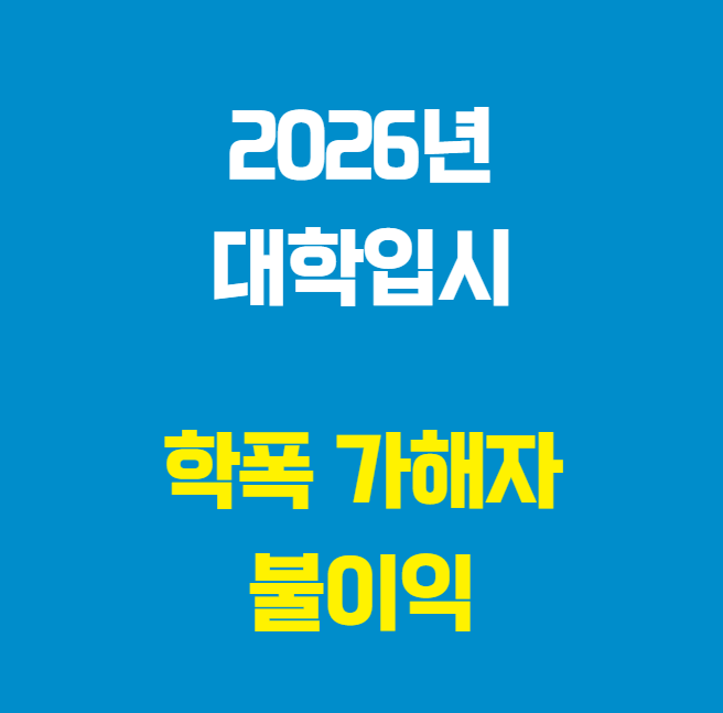 2026년 대학 입시부터는 학교 폭력 가해 이력이 있는 학생들에 대해 불이익이 부여될 예정입니다. 성균관대학교와 서강대학교는 해당 조치부터 수시 및 정시를 포함한 모든 입학 전형의 총점을 영점 처리하여 아예 입학을 제한합니다. 이화여대, 한양대, 중앙대, 인하대는 폭력 가해 학생에 대해 차등 감점 조치를 취하며, 가장 높은 처분인 8호와 9호를 받은 학생은 입학 자격을 박탈합니다. 교육대학은 더 엄격한 기준을 적용하며, 서울교대, 경인교대, 교주교대는 학교 폭력 이력이 있는 지원자의 지원 자격을 제한하거나 부적격 처리할 예정입니다. 서울대는 "학교폭력 관련 기재 사항이 있는 경우 정성 평가해 서류평가에 반영한다"라고 밝혔고, 고려대는 체육교육과 특기자전형에서 학폭 조치사항이 있는 수험생에게 1단계부터 부적격 처리하기로 했습니다. 연세대 수시모집 체육인재 특기자전형과 학교장추천전형에서 지원 자체를 불허할 방침이다.