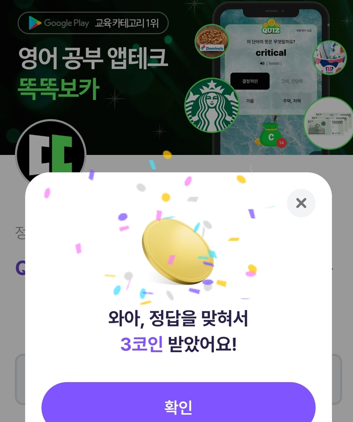 제가 영어 공부해서 캐시 모아 네이버페이 쿠폰 사는걸 보더니, 000 먼저 영어 공부에 관심을 갖기 시작하더라고요.