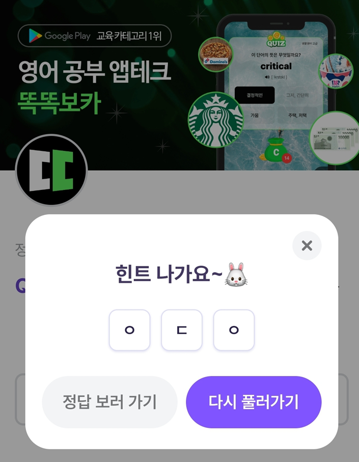 비트버니 4월 11일 오늘의 퀴즈, 정답은? ㅇㄷㅇ