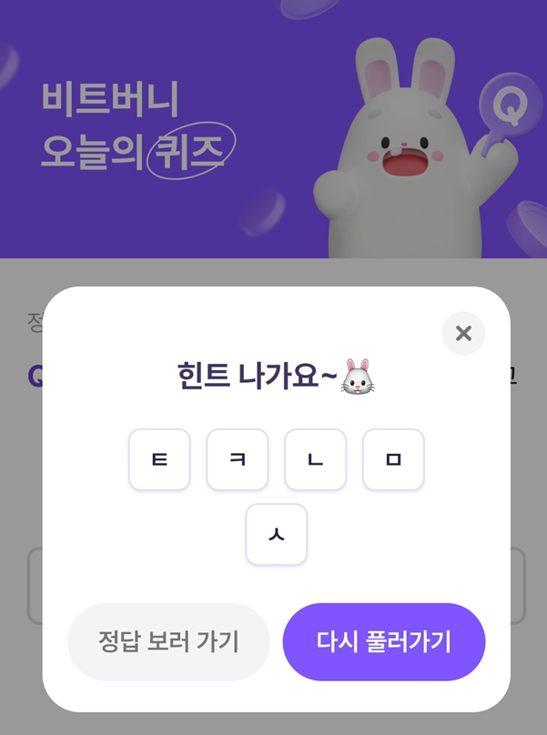 비트버니 4월 14일 오늘의 퀴즈, 정답은? ㅌㅋㄴㅁㅅ