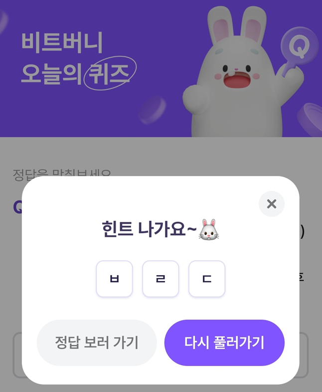 비트버니 4월 8일 오늘의 퀴즈, 정답은? ㅂㄹㄷ