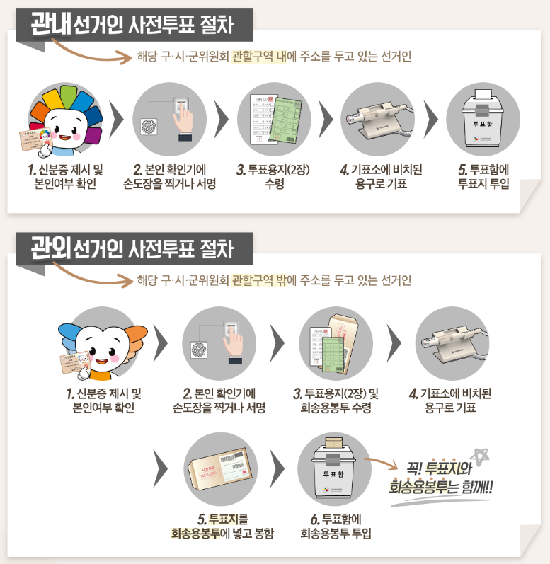 * 본인의 주소지 관할 지정된 투표소에서 투표